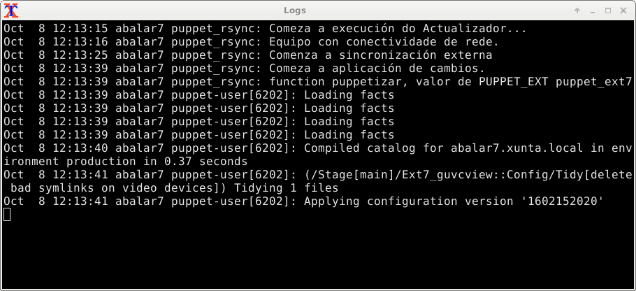 - Sí, pasaría a realizar de novo o procedemento de actualización, amosando nunha ventá información relativa ao proceso que se está aplicando, e tras rematar a actualización do equipo, aparecerá unha nova xanela onde se informa de que o proceso rematou, xunto co tempo que se inverteu no proceso.