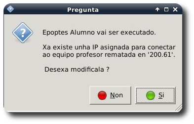 Ao pulsar mostrarásenos unha mensaxe solicitando os dous últimos díxitos mostrados entre puntos da dirección IP do equipo do docente. Tras inserilos facemos clic en "Aceptar"