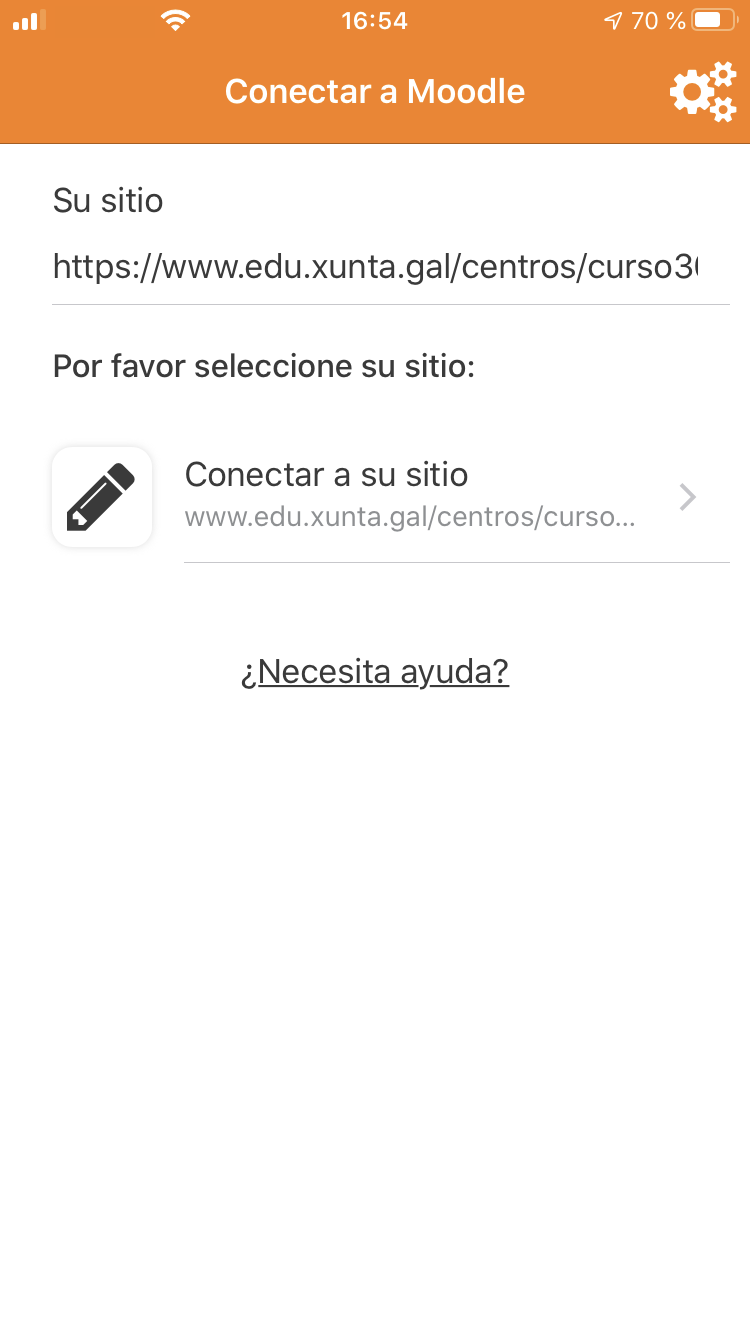 Fíxate que introduces correctamente a dirección URL e que non cometes ningún erro. Sobre todo asegúrate de que introduces o dominio ".gal" e non ".es"Se o enderezo URL introducido é correcto e a configuración da Aula Virtual tamén é correcta, a app permitirá que pulses o botón "Conectar ..."