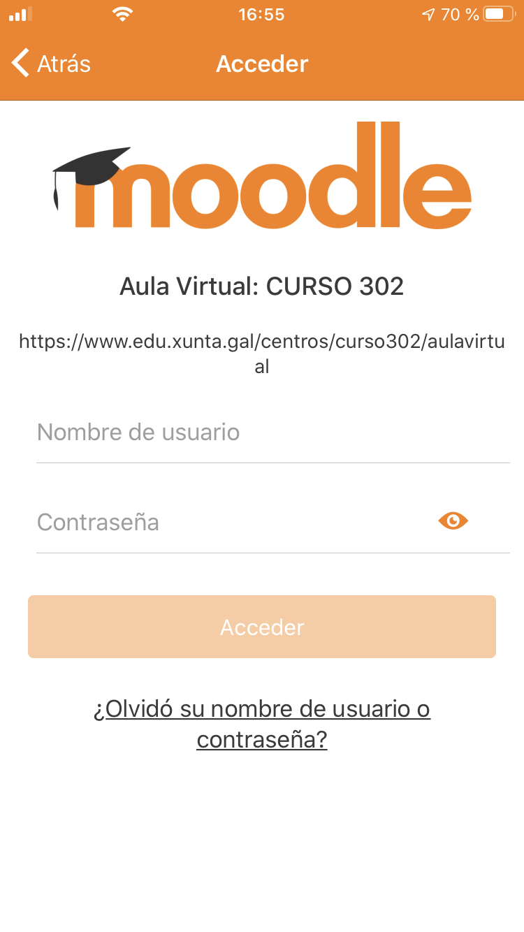 Cando abras por primeira vez a app, deberás introducir a dirección URL de aula virtual do teu centro.