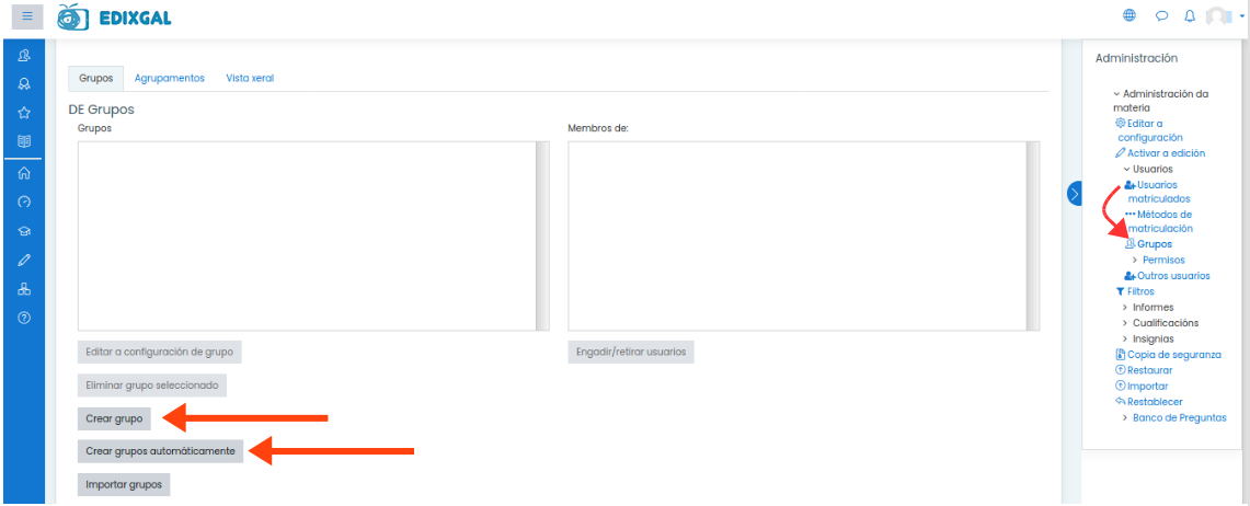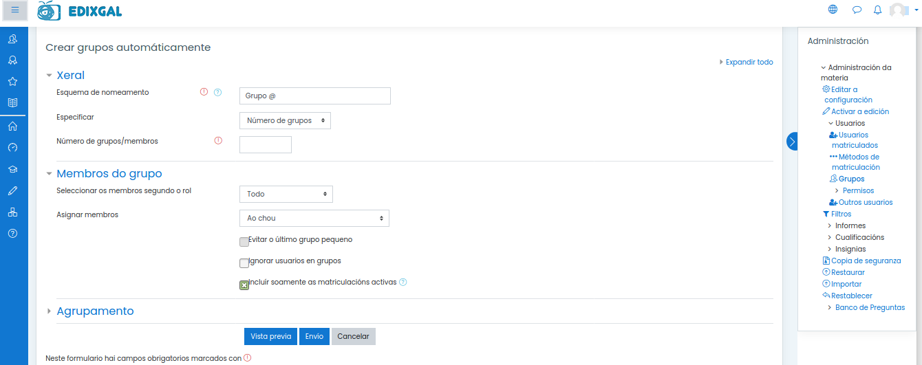 Opcionalmente tamén podemos crear grupos de forma automática pulsando o botón "Crear grupos automaticamente".