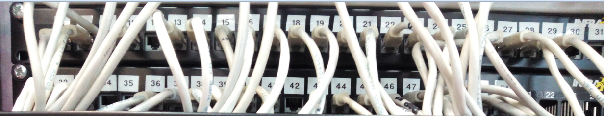- Panel de parcheo ( Patch Panel) , a súa función principal é a de concentrar na parte traseira cableado UTP ríxido, que proveñen dos diferentes nodos da rede local, mentres que na parte frontal ten a función de interconectar a rede principalmente cos Switches. Permite organizar o cableado dos diferentes equipos que participan na rede. Debe estar etiquetado coa identificación de cada toma de datos do edificio.