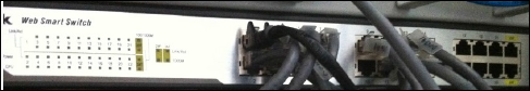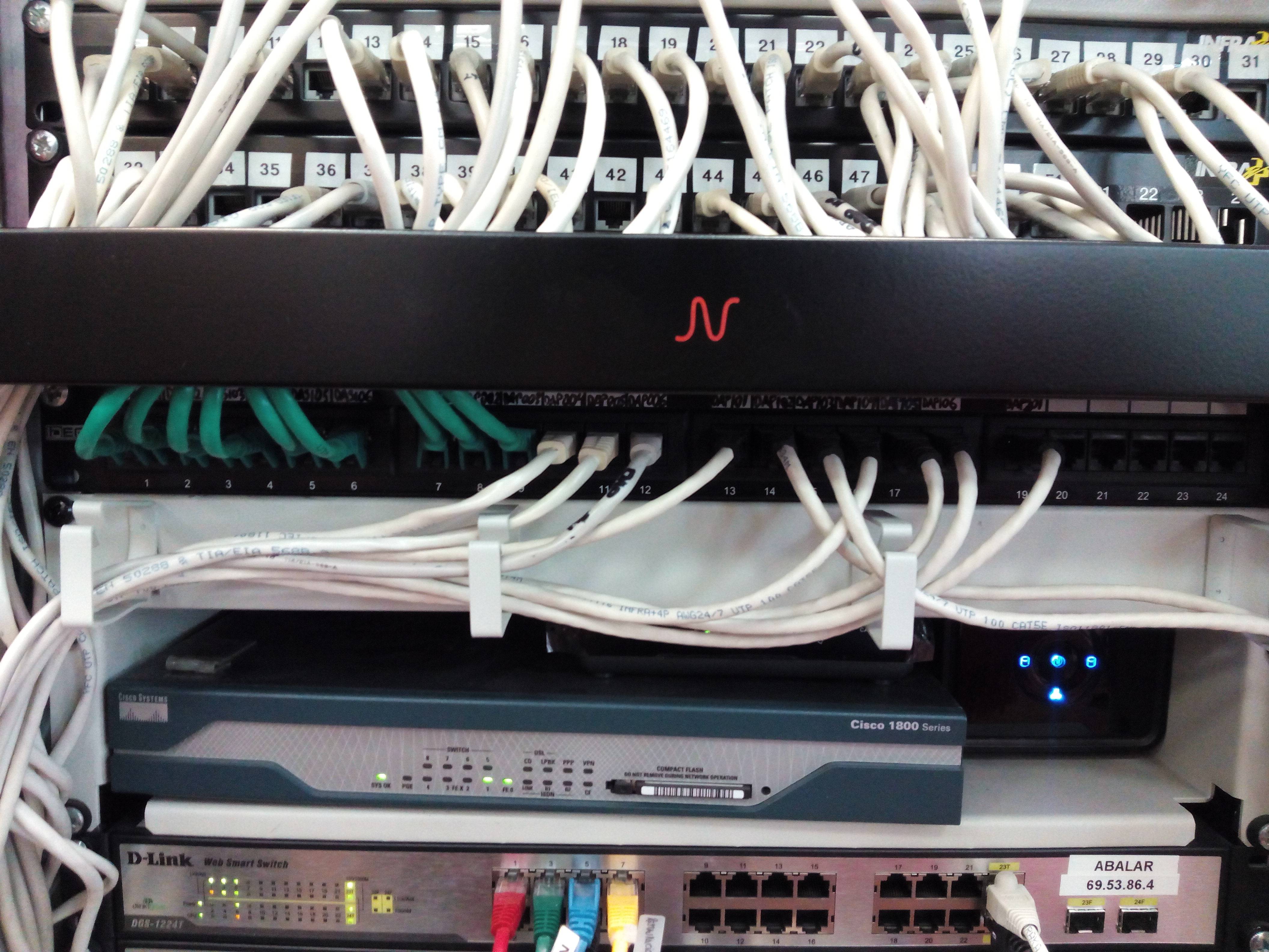 - Novo switch (switch abalar) pasa a ser o switch principal do centro, o que implica unha adaptación da rede do centro á nova situación, será o core (o que conecta co router) e estará reservado para a interconexión da electrónica de rede e servidores con cada un dos seus portos brindando un ancho de banda completo en cada porto. Debe estar identificado con nome, e se nos fixamos este switch ten os latiguillos de cores.