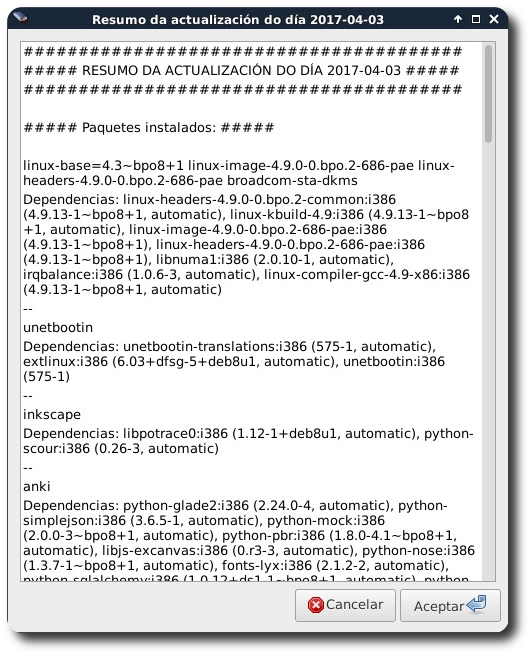 - A través da opción Mostrar resumo poderemos visualizar os cambios que se realizaron nas aplicacións do noso equipo, aparecendo unha ventana semellante á seguinte: