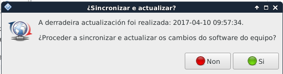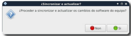 - Ao premer neste novo aplicativo, indicaranos nunha nova xanela a advertencia de que se vai a actualizar o software do equipo. Dita actualización pasa a facerse neste momento, e a partir de agora de xeito automático e transparente para o usuario, unha vez ao mes.