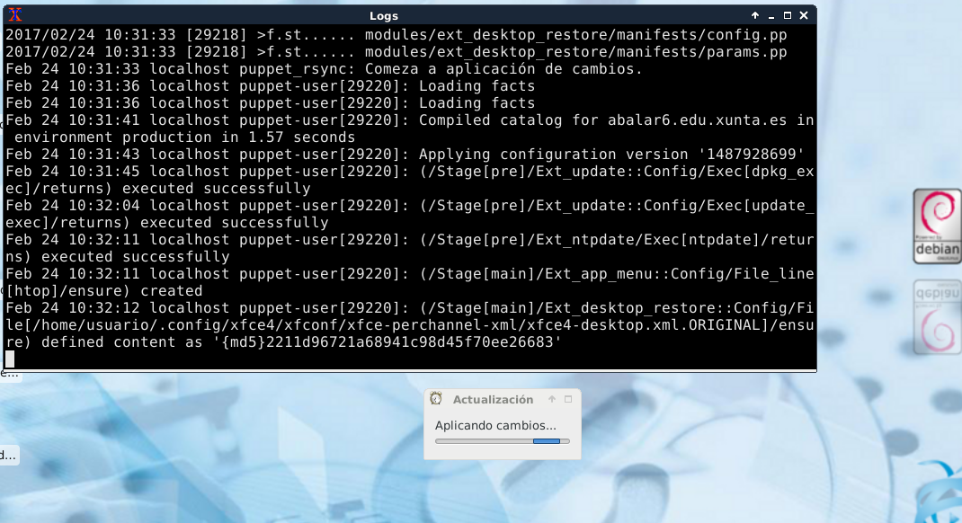 1. Nun terminal irán pasando unha serie de liñas de texto como resultado do log do proceso de actualización.