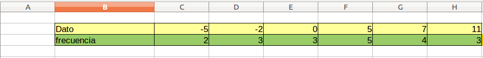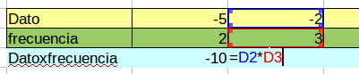 Para comezar calculamos nunha nova fila o produto de cada dato pola súa frecuencia.