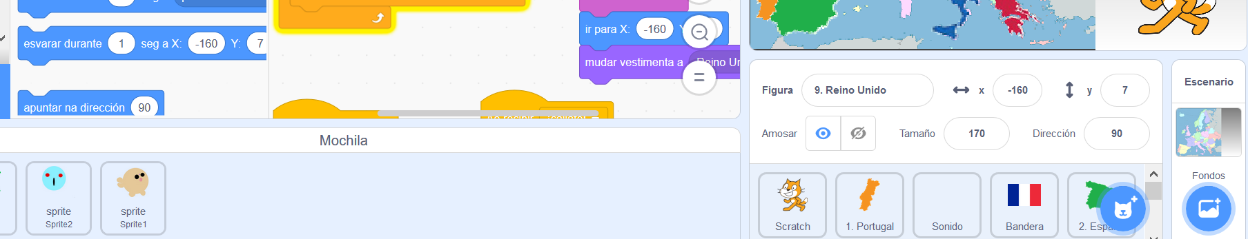 A mochila aparece na parte inferior. Cando entras nun programa pode copiar un sprite, debuxo e programas, levando o sprite ata a mochila.