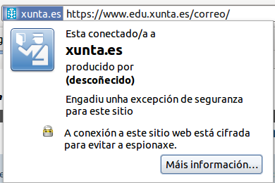 No caso de Mozilla Firefox, un dos navegadores máis utilizados, a información de seguridade aparece cando facemos clic no botón que está xusto ao lado de https:// e que pode ser gris, se a páxina non facilita ningún tipo de información, azul se da información básica ou verde se da información completa.