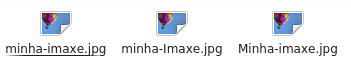 - O sistema operativo Linux, "e sensible" (diferencia) ás maiúsculas, polo que, ao nomear un ficheiro, non é o mesmo "Minha-imaxe.jpg" que "minha-imaxe.jpg" ou "minha-Imaxe.jpg" noutros sistemas operativos, non se podería dar este caso porque os tres arquivos terían o mesmo nome.