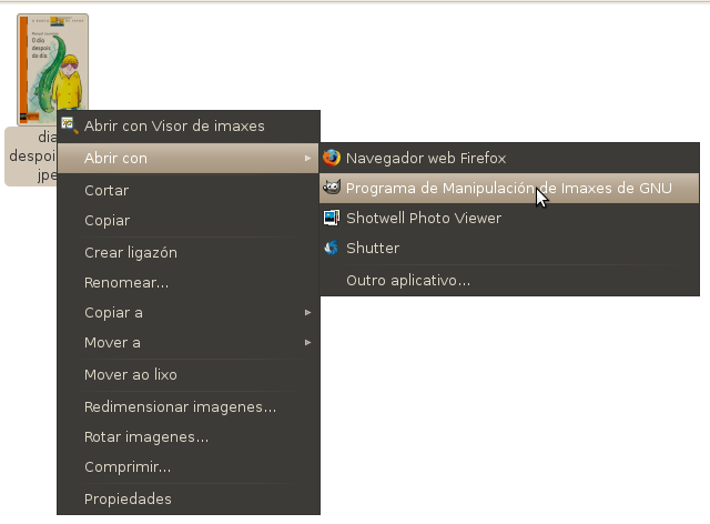 O menú contextual chámase así porque ofrece diferentes opcións segundo o que esteamos facendo e o programa que esteamos a utilizar; aparece ao facer clic co botón dereito do rato sobre unha icona ou outro elemento calquera que teñamos en pantalla. Nas imaxes vemos o menú contextual que aparece ao facer clic co botón dereito sobre un elemento do escritorio, e o que aparece cando facemos o mesmo traballando nun editor de texto.