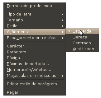 As opcións que aparecen en gris clariño non poden ser aplicadas nese momento. A opción "Pegar", por exemplo, unicamente estará activa se previamente copiáramos ou cortáramos algunha porción de información que pasara a almacenarse no portapapeis.