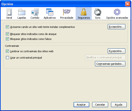- Indícalle a Firefox que queres que garde todos os contrasinais excepto os da Consellería de Educación.