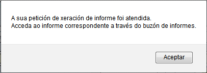 5.- Pon un nome ao informe (calquera vale) (4)e finalmente preme "Obter informe" e "Ir ao buzón" (5). Aparecerá este aviso o que significa que xa podes acceder ao teu buzón para descargalo e gardalo ou imprimilo.