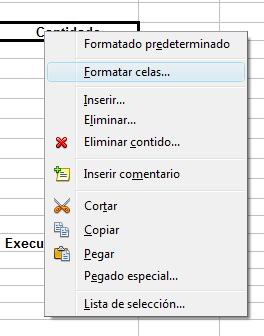 Tamén podemos cambiar o formato da cela premendo o botón dereito do rato e selecionando Formatar celas…: