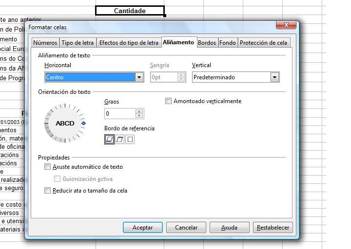- O tipo de datos: xeral, número, porcentaxe, texto, data, porcentaxes, moeda…