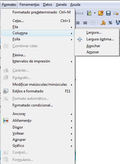 Outra forma de realizar esta operación é a través do menú, en Formato, Columna, largura...