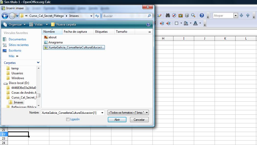 Creamos en "Mis documentos" e dentro do cartafol Curso_Folla_Calculo_Calc, outro cartafol que chamaremos Imaxes.