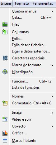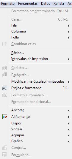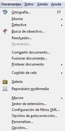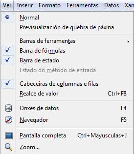 Un paseo polo menú do programa Calc