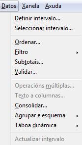 Na opción de Datos do menú figuran diferentes operacións que podemos realizar cos datos: