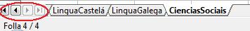 - Coas iconas que se atopan á esquerda das pestanas cos nomes das follas podemos desprazarnos entre a primeira e a última folla, avanzando de dereita a esquerda. Para ver ou editar nunha folla determinada basta con premer co rato enriba da pestana que corresponda.