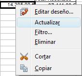 r unha cela calquera da táboa dinámica, facer clic no botón dereito do rato e na xanela emerxente premer en Actualizar.