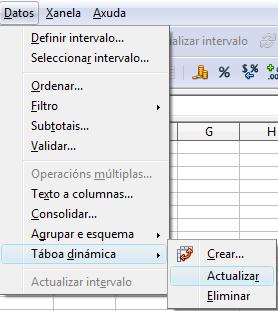Tamén podemos actualizar a táboa dinámica a través do menú en Datos > Táboa dinámica > Actualizar.