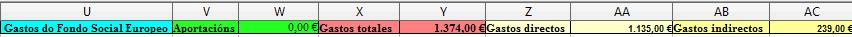 Nesta folla quedan rexistrados todos os ingresos e gastos que están relacionados co Fondo Social Europeo.