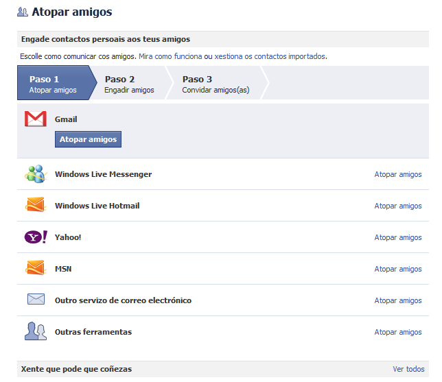 A primeira pantalla ao acceder ao Facebook vai a ser unha axuda para atopar amigos que podemos aceptar ou deixar para máis adiante