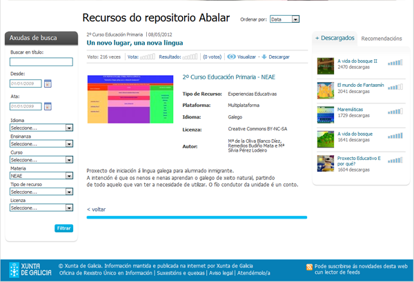 - Na columna de esquerda reflíctense cales son os contidos máis descargados, ou ben os máis recomendados.