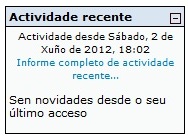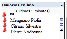 Neste marco poden aparecer estes bloques, hai que recordar que o diseño do curso faino os/as administradores/as e/ou coordinadores/as que poden engadir ou eliminar bloques: