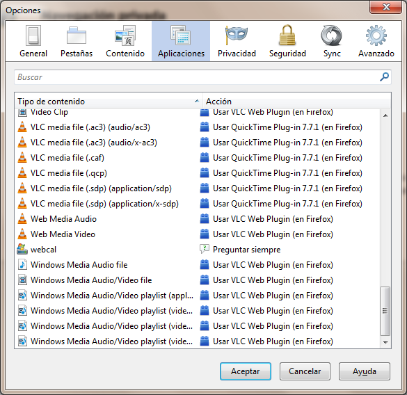 Neste botón vense as aplicacións que utiliza Firefox para abrir distintos formatos de arquivos: