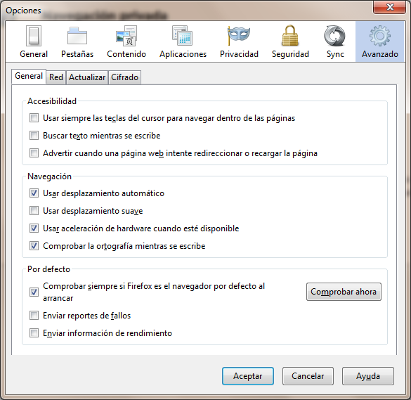Esta é unha ventá na que podemos cambiar moitas aplicacións do navegador: conexións da rede, protocolos, actualizacións.... , tantas que incluso pade bloquear o navegador e polo tanto salvo en casos moi necesarios non se recomenda cambiar nada.