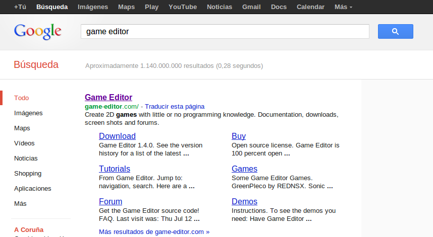 Agora procedemos a descargar de internet o programa GameEditor. Facemos uso do navegador de Internet:![]()