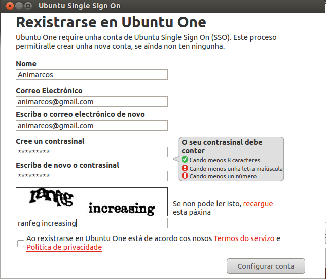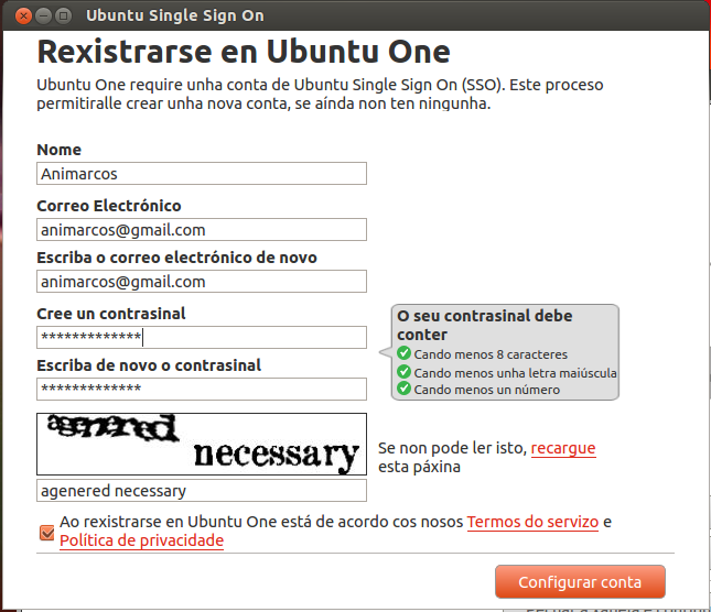 Imaxe 3.2 Rexistro de Ubuntu One.
