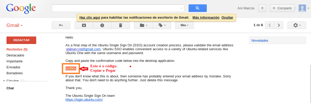 Agora pide o código de verificación que enviaron ao correo que demos, vamos ao correo ...