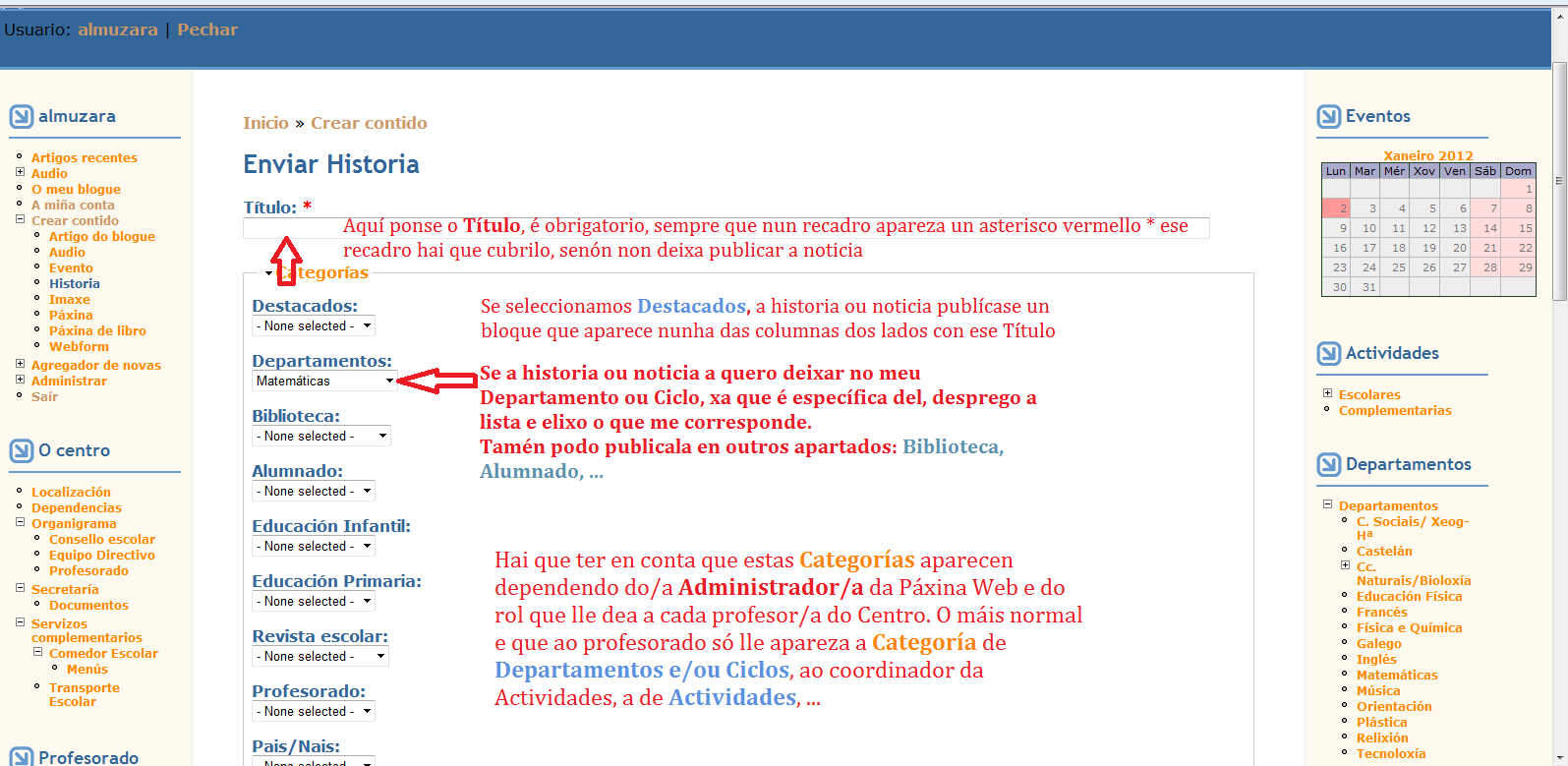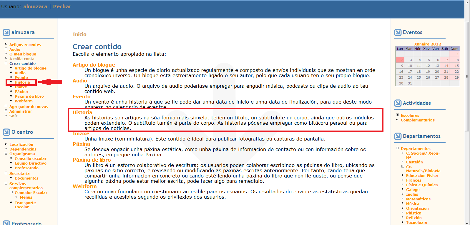 Coma xa dixemos, neste módulo só nos ocuparemos de crear unha historia/noticia para publicar na Páxina Web do Centro ou na Páxina Web de Probas do Curso.
