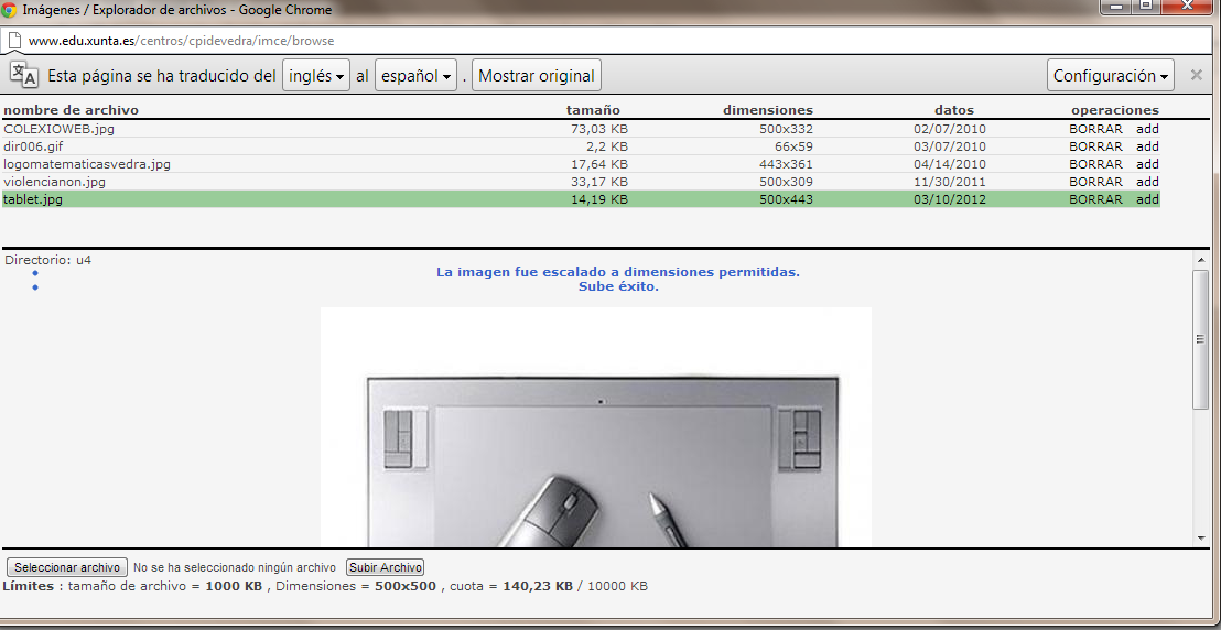 Que é como o almacén que teño dos meus arquivos que levo xa subidos, abaixo en Examinar permite buscar no ordenador a imaxe que quero para historia.