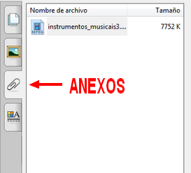 Podemos colocar anexos para ter mellor organizados os contidos da nosa actividade ou porque algún formato de arquivo non é posible colocalo na zona de traballo, como é o caso dos vídeos en mpeg nos equipos que non son do proxecto Abalar.