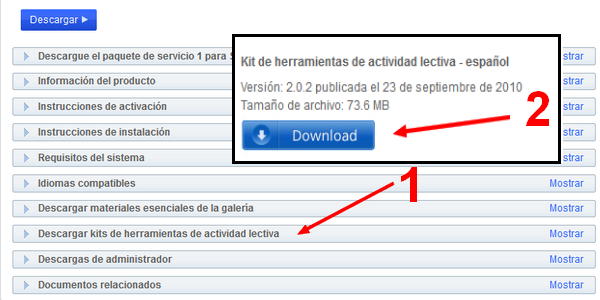 Cando instalamos o software de Notebbok 10 instala xa este paquete de recursos. En caso de que non fora así podemos facer a descarga desde a páxina de Smart www.smarttech.com/es> Soporte> Descarga del software na opción Software de aprendizaje colaborativo SMART Notebook escollemos o sistema operativo onde imos instalar e para rematar escollemos Descargar kits de herramientas de actividad lectiva e logo o arquivo no idioma que desexemos.
