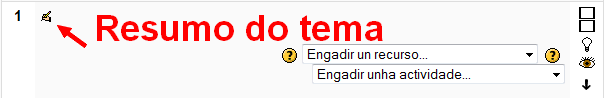 Premendo sobre o botón de edición do resumo de tema poderemos crear un texto para explicar calquera aspecto ou contido do tema.