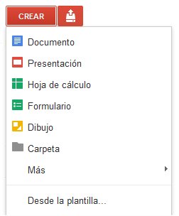 Para iniciar un documento novo temos dúas posibilidades, premer sobre o botón Crear ou subir un arquivo xa iniciado do noso equipo (botón á dereita de "Crear").