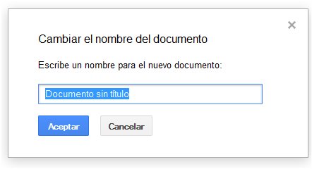 O primeiro que deberíamos facer é poñerlle un título ao documento. Premendo sobre Documento sin título, que ven sendo realmente o título que por defecto atribúe a aplicación aos novos documentos, abrirase unha ventá de diálogo onde podemos escribir o título que nos pareza máis oportuno.