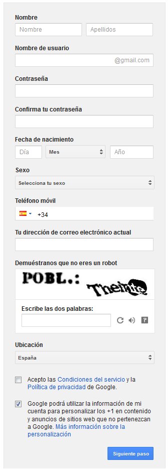 Aínda que é probable que xa teñas unha conta en Google (gmail) imos ver rapidamente como rexistrarse para comezar a utilizar as aplicacións.