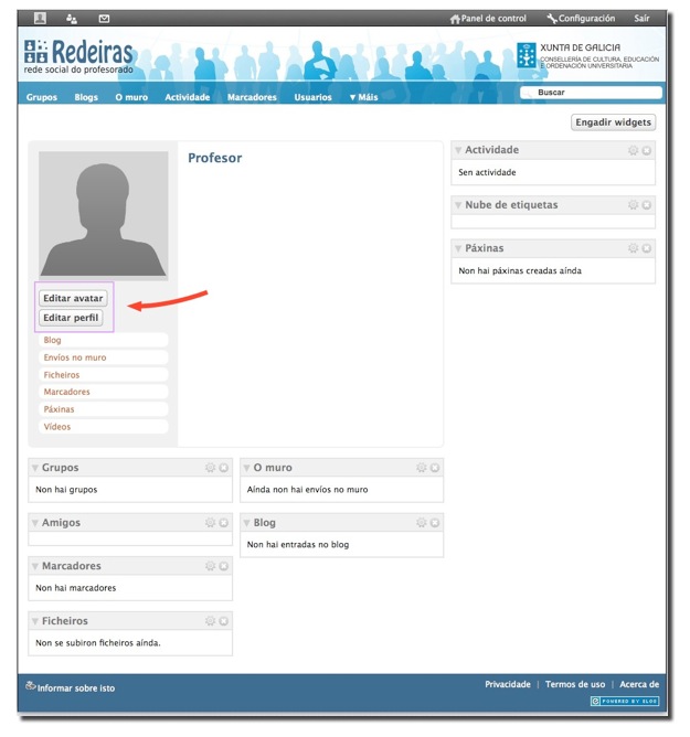 En Editar perfil podemos introducir algún dato se creemos que é interesante que sexa público. Podemos deixalos tal e como están en branco.