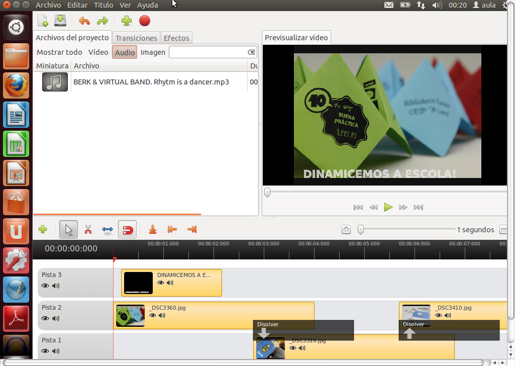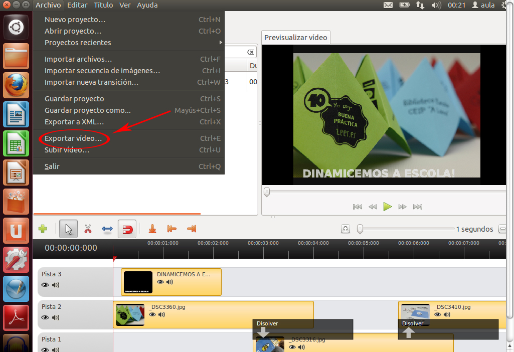 Unha vez que estamos convencidos co resultado, a exportar. Pero antes de nada gardemos o proxecto, xa que sempre pode haber algunha cousa que retocar, algunha versión que facer sobre a primeira montaxe...