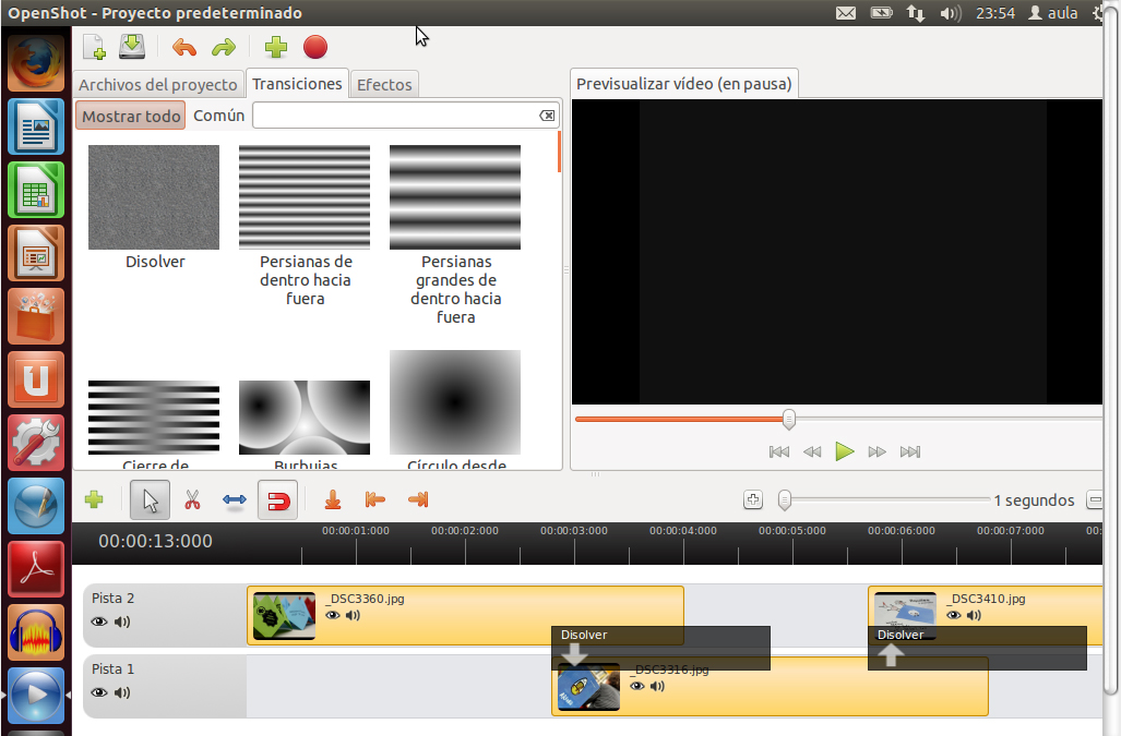 Dende a pestana "Transiciones" arrastramos as deseadas cara as secuencias desexadas.