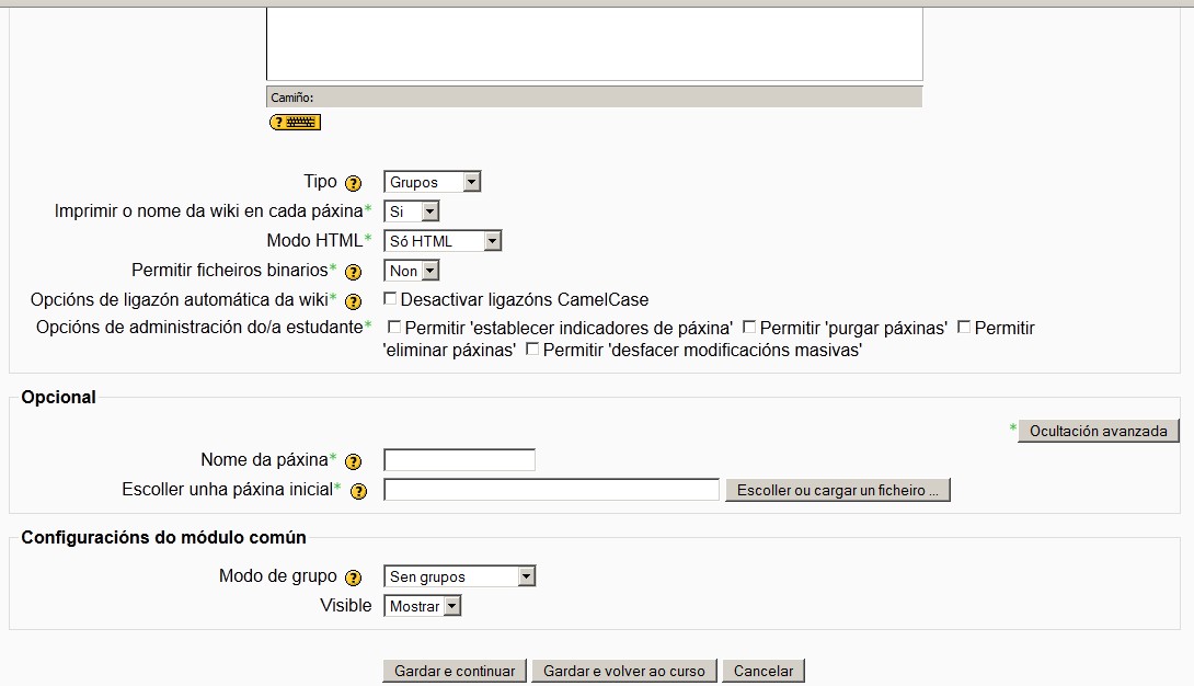 Grupos visibles: os estudantes poden ver o wiki dos outros grupos pero só poden editar o do seu grupo.