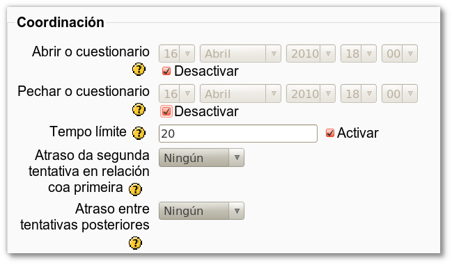 límite: 20 min. Por defecto, os cuestionarios non teñen