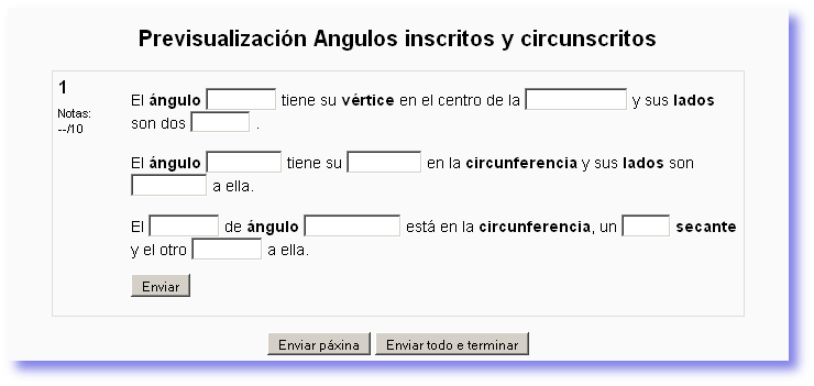 2. Un cadro de texto baleiro onde o estudante deberá escribir unha resposta, normalmente de texto.
